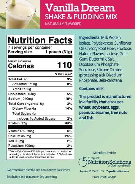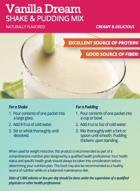 Vanilla Dream Shake & Pudding Mix at a glance*