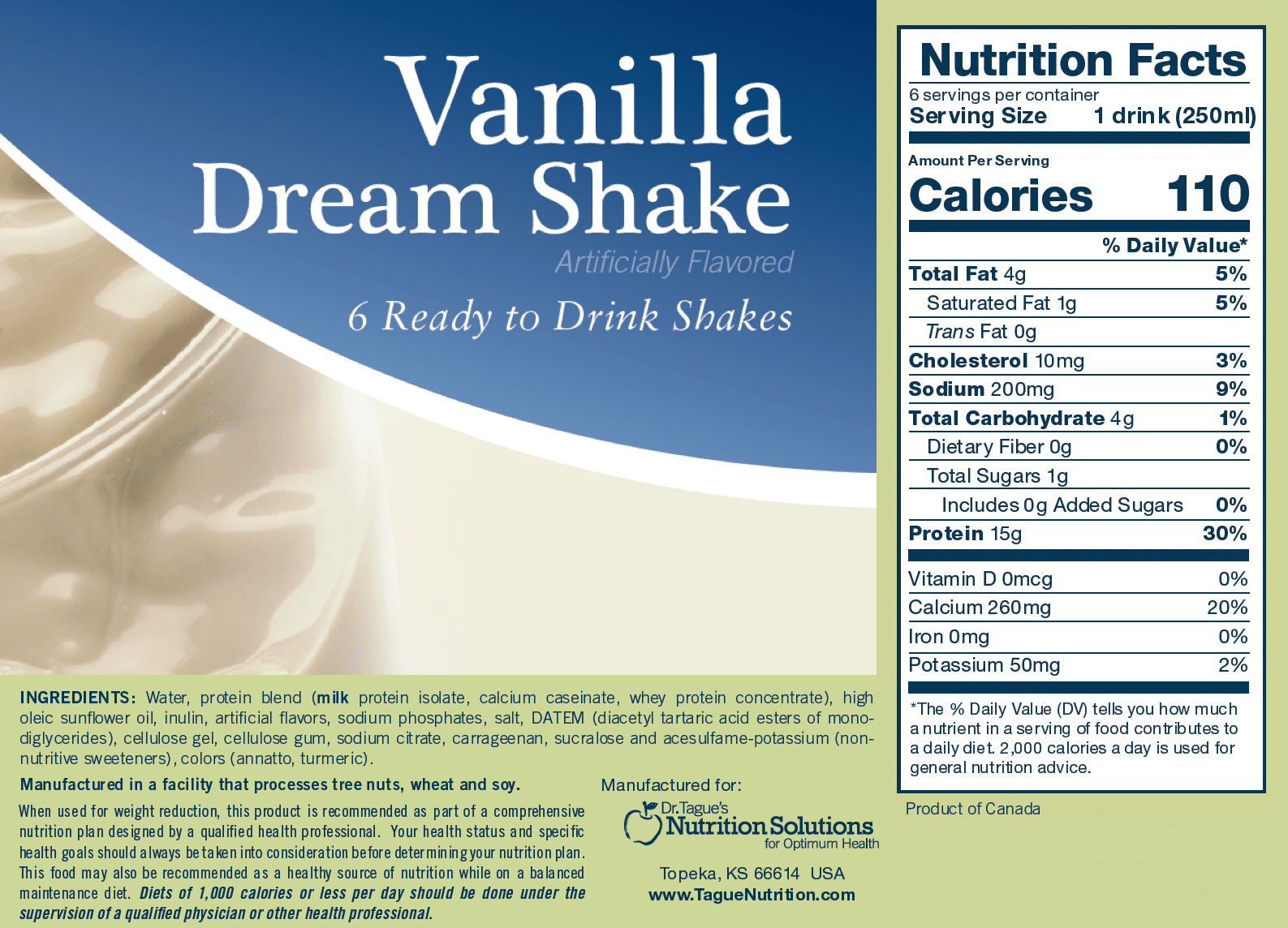 Vanilla Ready to Drink (RTD) Dream Shake at a glance*
