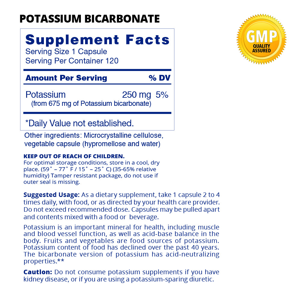 Note: Consult your healthcare provider prior to taking potassium supplements. Avoid potassium supplements if on “ACE Inhibitors” or angiotensin receptor blockers (ARB’s) for blood pressure, such as lisinopril or losartan, or “potassium-sparing” diuretics, such as triamterene. Those with chronic kidney disease or diabetes should avoid potassium or take only under medical supervision.