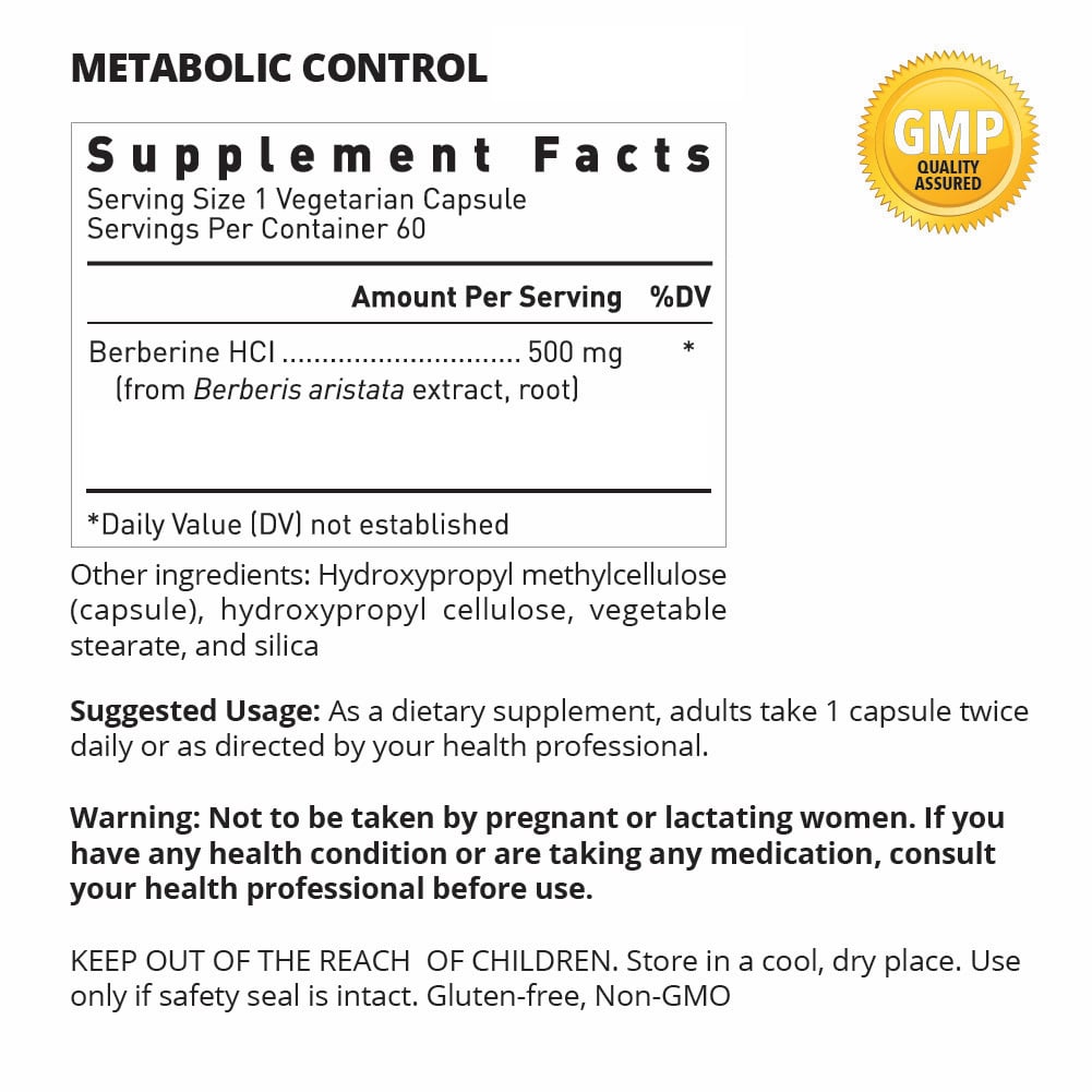 Human studies have shown that berberine, a key ingredient in Metabolic Control, lowers blood glucose levels about as well as the prescription drug metformin. But, unlike metformin, berberine also significantly reduces triglyceride and cholesterol levels!